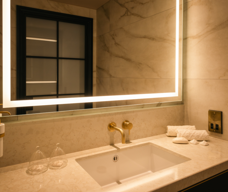 Home > Case Studies > The Mercantile Hotel The Mercantile Hotel Versatile Designer: Ita O'Brien Architect: Millimetre Design Main Contractor: Adston Construction Versatile, with over 40 years of experience in design-led sanitaryware, tiles, wellness, and indoor climate solutions, collaborated on The Mercantile , a landmark hotel in Dublin. Working closely with the architect, interior designer, and client, Versatile delivered a complete bathroom package including sanitaryware, tiles, brassware, and bespoke elements. All components were curated to reflect the hotel’s design vision: a refined blend of Dublin heritage and contemporary luxury. The Challenge The Hotels compact ensuite layout posed a significant design and functionality challenge. The space demanded solutions that would maximise usability without compromising aesthetics. The high-traffic hospitality environment also required durable, practical products that aligned seamlessly with the project’s luxury design standards. The Solution Versatile developed and supplied a series of tailored, high-performance solutions for 100 number of bathrooms. Bespoke shower door engineered specifically to optimise space and create a sleek, integrated appearance. Custom pressed steel basin with a deeper than standard profile to enhance practicality and durability for hotel use. Carefully selected components including non-slip tiling and high-performance brassware balancing form, function, and long-term performance. Through thoughtful design and collaboration, Versatile delivered bathroom spaces that elevate the guest experience, combining detail, quality, and innovation throughout.