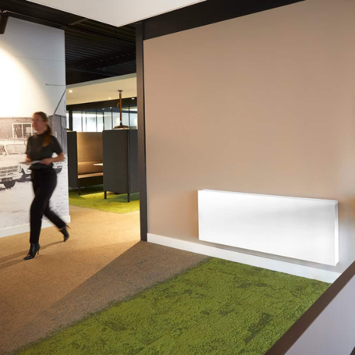 Built with advanced hydronic technology, the Briza 12 creates an optimal indoor climate all year round, reacting quickly to temperature demands while maintaining low energy consumption. Its recessed design ensures silent, unobtrusive operation, making it ideal for living spaces, offices, hospitality settings and modern commercial environments.