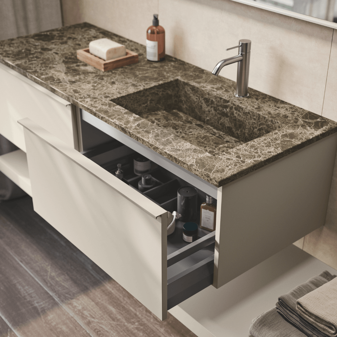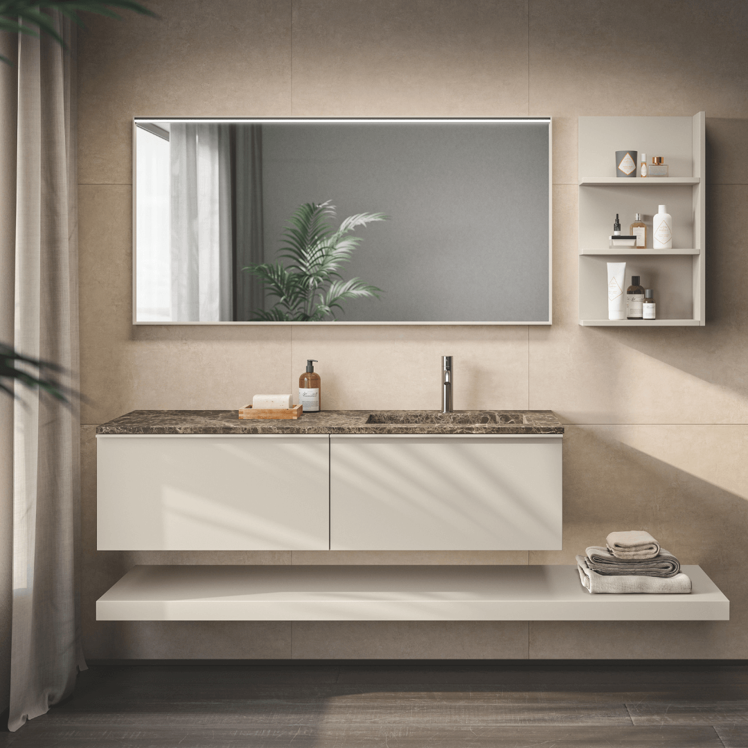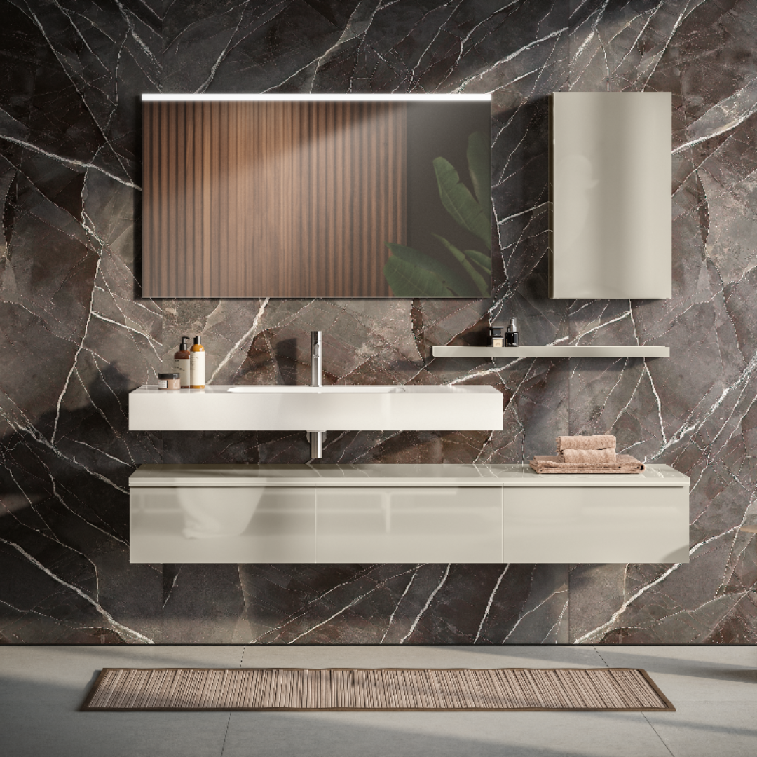 Bright like moonlight. This is the Moon bathroom furnishing line. A versatile and modular line, which offers a wide range of solutions for finishes, handles, countertops and heights.