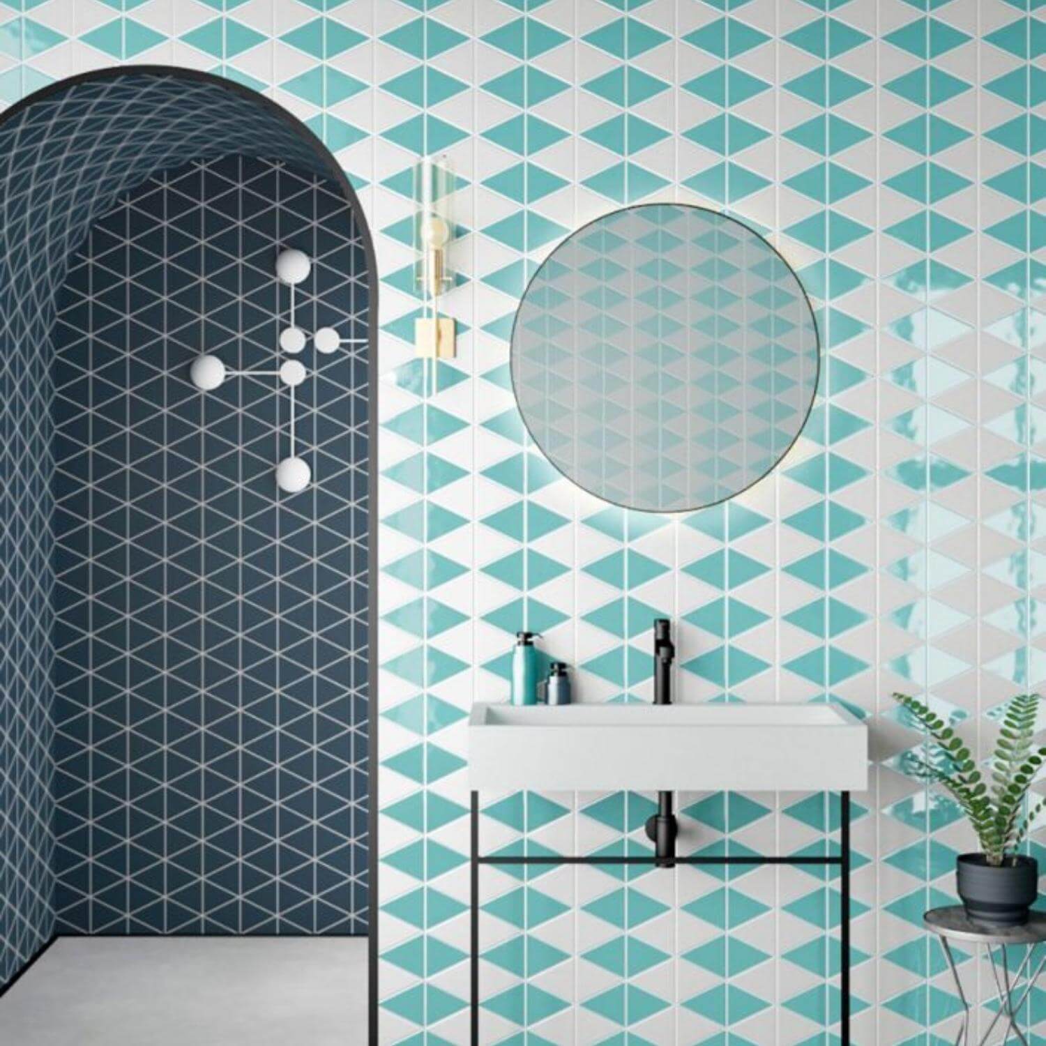 A fun ceramic wall tile available in a triangular format in an exciting palette in matt and gloss finishes. Available in the flat colour and also with a selection of wallpaper print decors